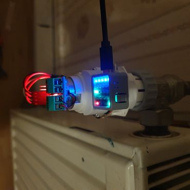 The node contains an m5stack atom development kit and a linear movement gearbox with the motor. m5stack atom will display the valve pin position, humidifier state, connection state, and status with the master controller. The gearbox mechanism will push or release the room heater valve pin. Control information will be received from the master controller over Bluetooth on every 10seconds.